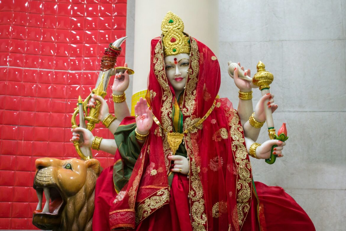 An idol of Maa Durga being worshipped at a Hindu temple in Mumbai, India for the festival of Navratri or Durga Puja. Photo: Sonika Agarwal/Unsplash+