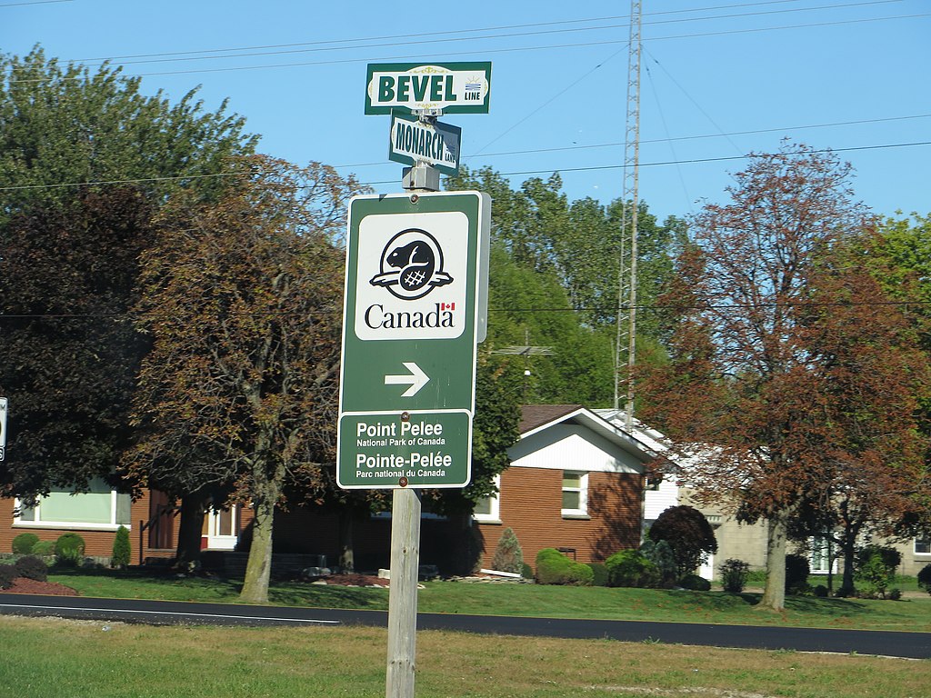 A Parks Canada sign marking the way to Point Pelee National Park near Leamington, Ont. Photo: Ken Lund/Wikimedia
