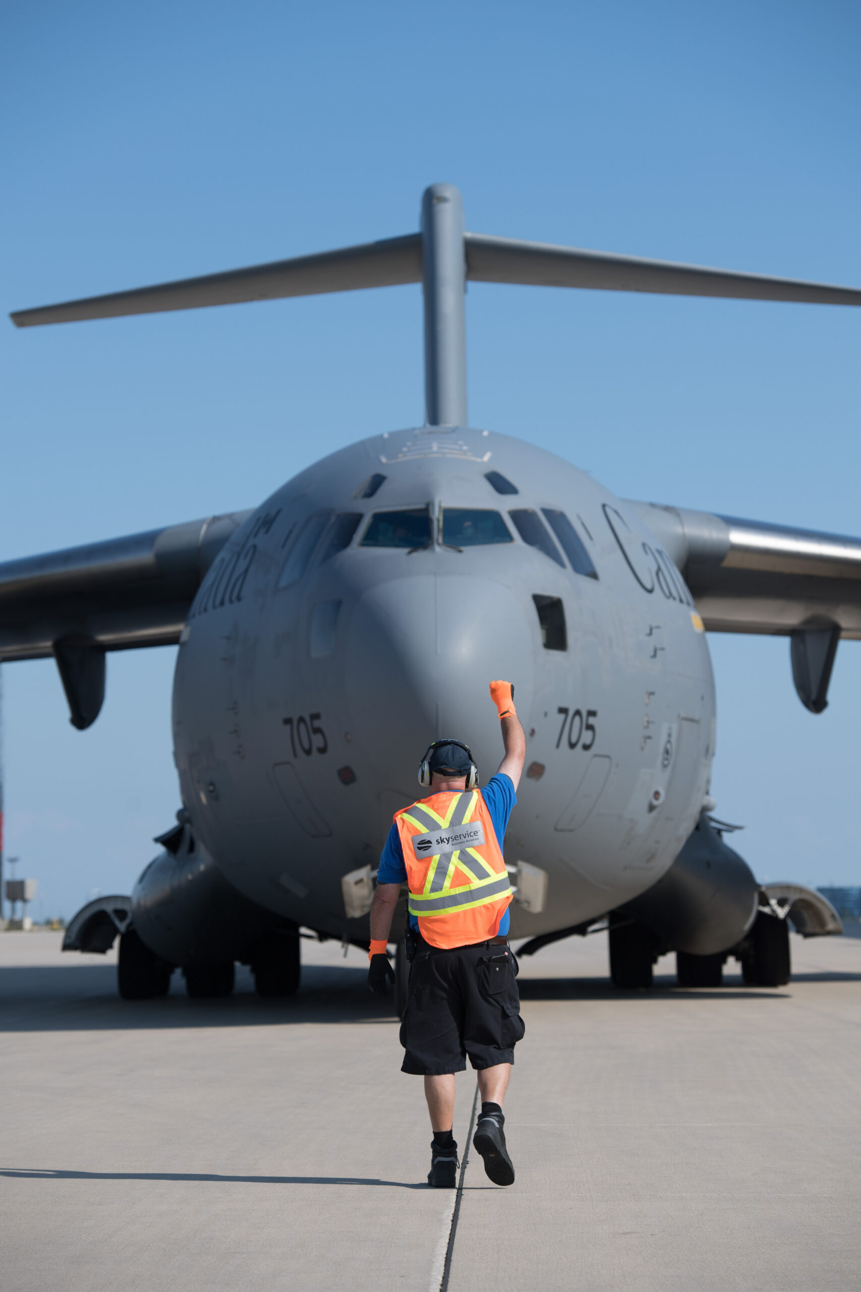 A CC-177 Globemaster aircraft carrying the first group of Afghan refugees who supported Canada's mission in Afghanistan lands at Toronto Pearson International Airport on August 4, 2021. Please credit: Cpl Rachael Allen, Canadian Forces Combat Camera, Canadian Armed Forces photo