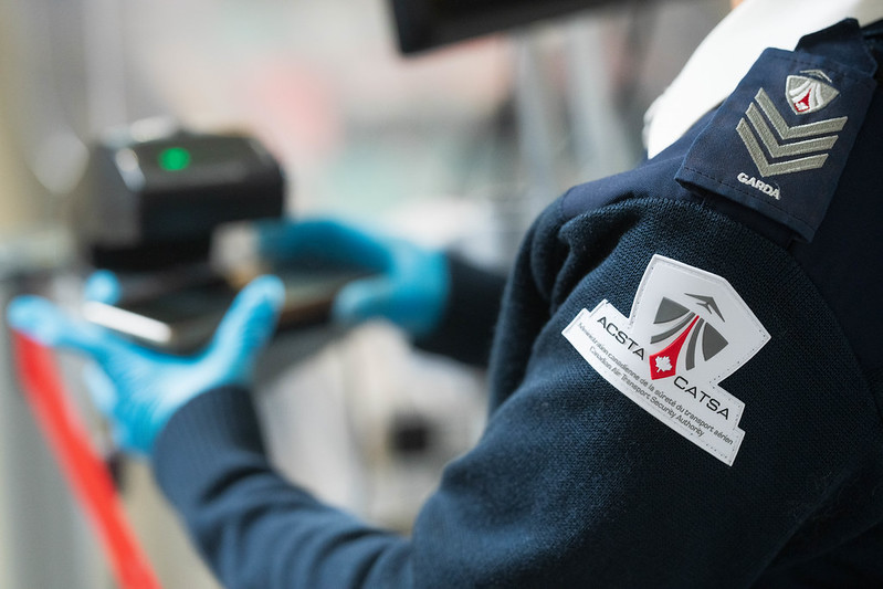 A screening officer who's CATSA uniform is in focus is scanning an electronic boarding pass. Photo: CATSA-ACSTA