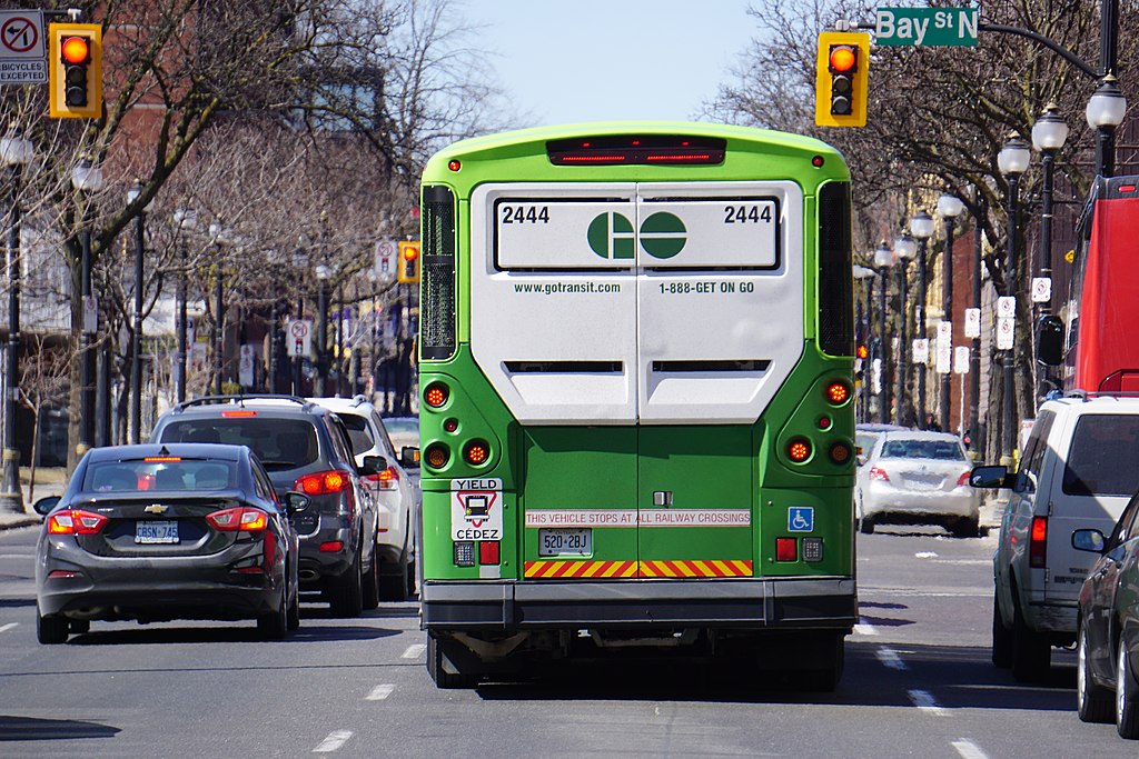 A Metrolinx GO Transit bus driving on King Street West in Hamilton on March 24, 2018. Photo: Britcouple007's Cam