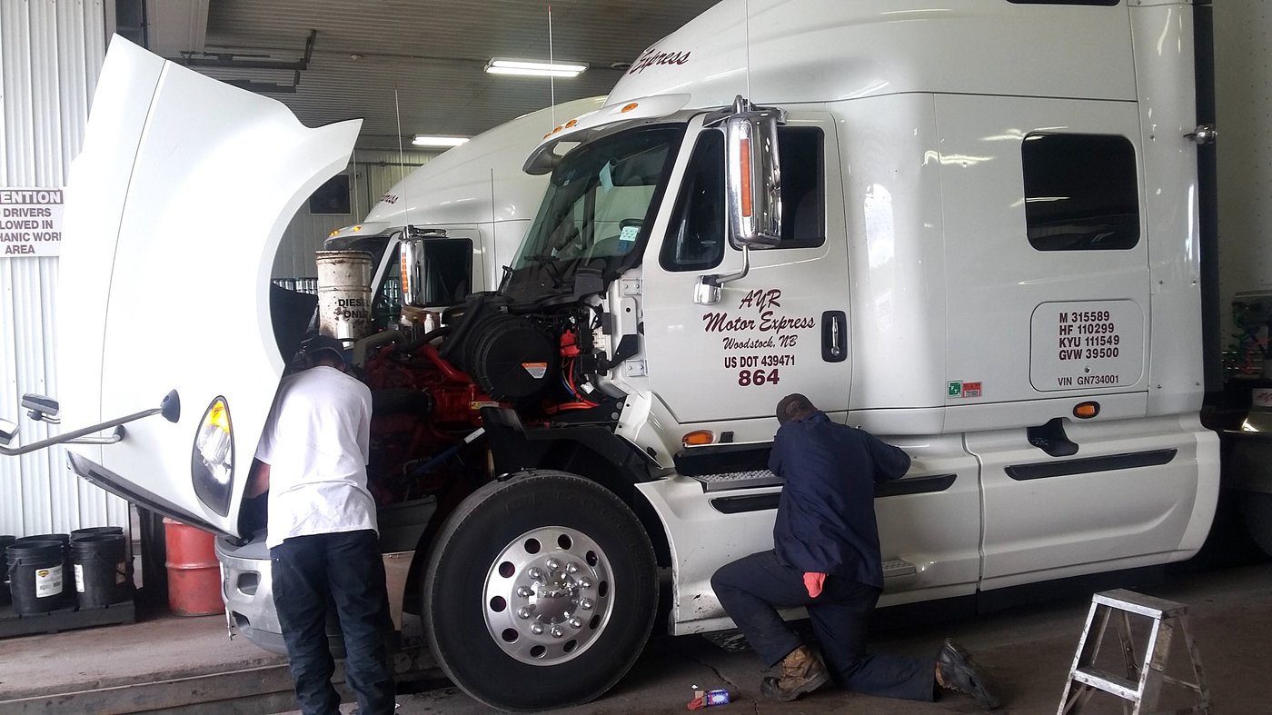 Mechanics ready an AYR Motor Express truck for the road. AYR Motor President Joe Keenan says he and other company owners are worried about the impact the Driver Inc. model is having an impact on the trucking industry. (AYR Motor Express/Keenan Truck repair photo